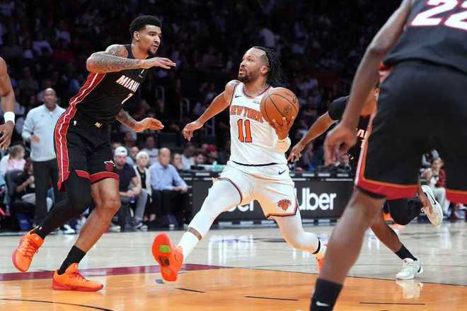中场休息回来,热火延续进攻火力,他们连续两节单节轰下30+得分。布伦森第三节持续给力表现,他一人单节得到12分,但尼克斯却依然是连续三节得分不足30分,且他们前三节均是单节得到27分。热火用团队攻势压制尼克斯,尼克斯第三节单节27-31再输4分,三节结束尼克斯81-88落后热火7分。前三节比赛,布伦森27分、阿奴诺比14分与布里奇斯18分,鲍威尔24+7+3、阿德巴约15+9与哈克斯13分。